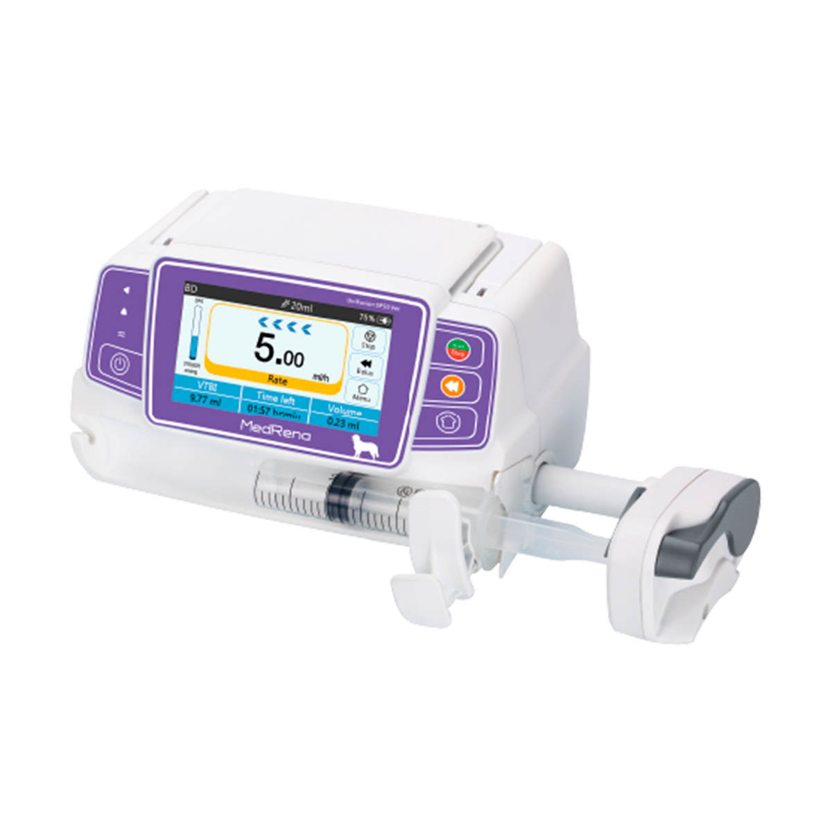 Aportando precisión, una facilidad de uso, seguridad y versatilidad para sus necesidades diarias de terapia de fluidos. Reconocimiento automático del tamaño de jeringa (5,10,20,30 y 50/60ml). Diseño amigable para mascotas pequeñas.